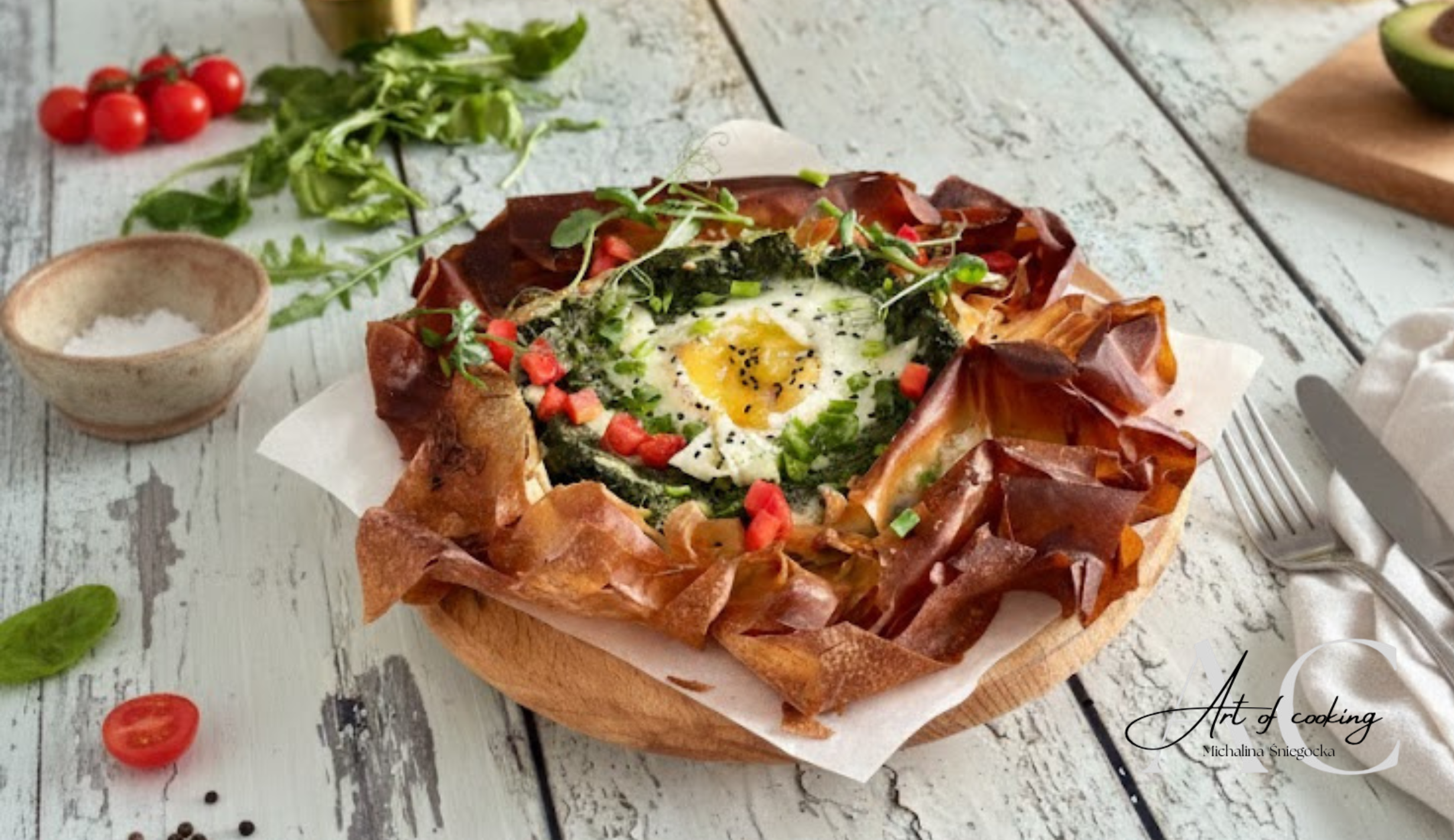 Na środek nałóż przestygnięty szpinak i wbij jajko.