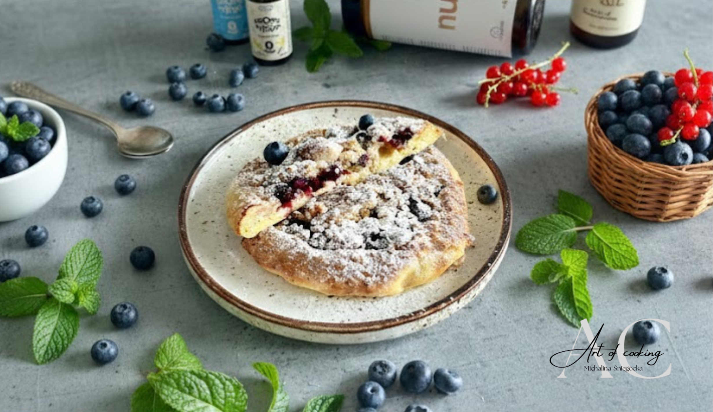 Na środku zrób wgłębienie i wypełnij je jagodami lub borówkami.