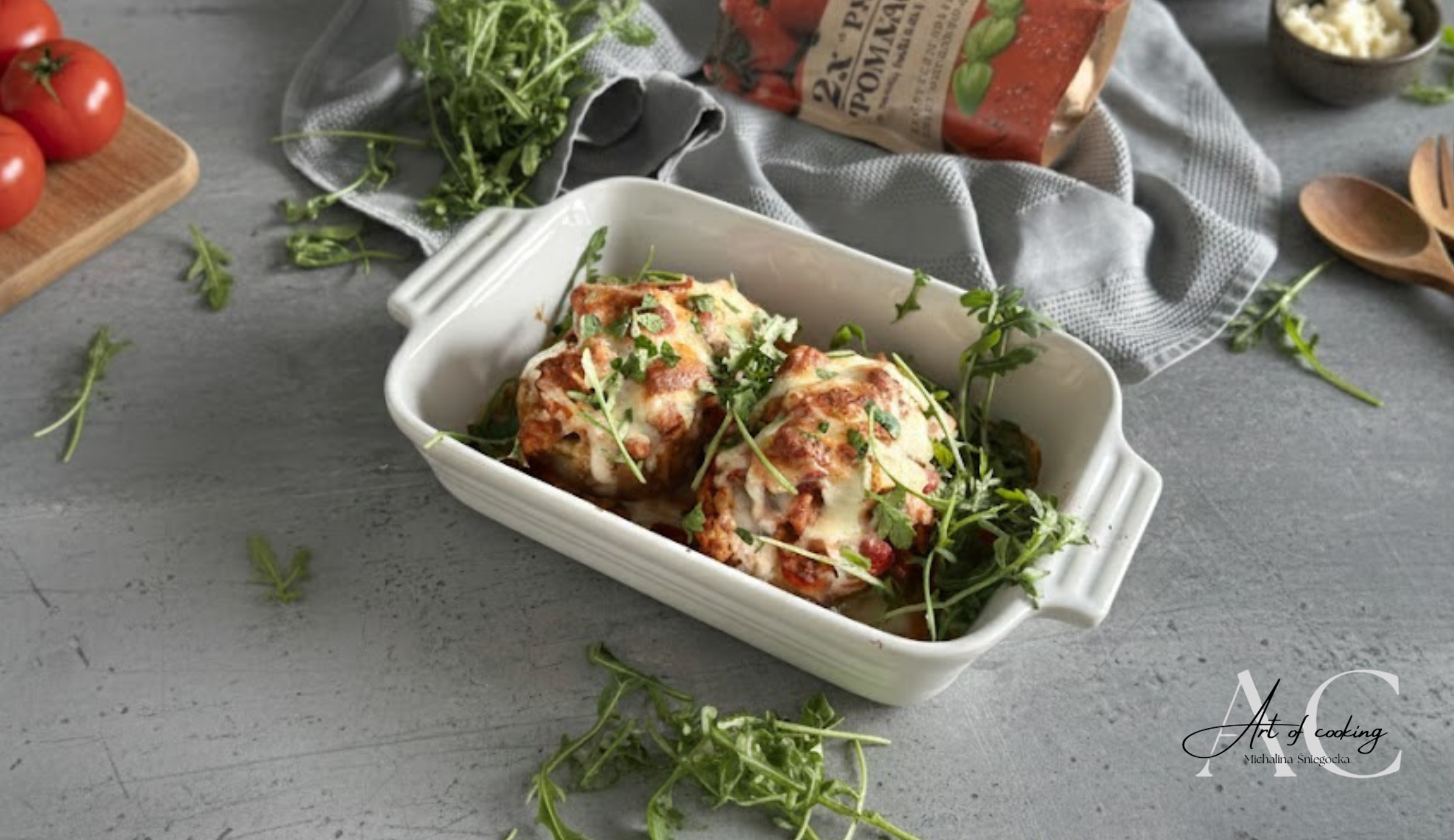 Całość piecz do zarumienienia przez około 20min pod przykryciem i 10min bez przykrycia w piekarniku nagrzanym go 180′